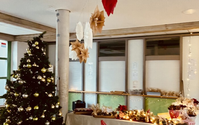Die Schulgemeinschaft beging einen lichtvollen Start in die Adventszeit Im Rahmen des Elternsprechtags wurde der Eingangsbereich unserer Schule zu einem vorweihnachtlichen Treffpunkt: Die vom Elternbeirat – insbesondere von Frau Jungwirth und Frau Eberl –