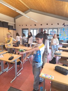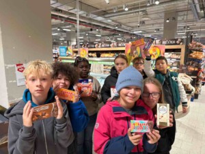 Später haben wir uns mit Fairtrade beschäftigt und im Edeka geschaut, welche Produkte fair gehandelt sind. Außerdem haben wir Übungen zum Gleichgewicht gemacht und gemerkt, wie wichtig es ist, Körper und Kopf in Balance zu halten.