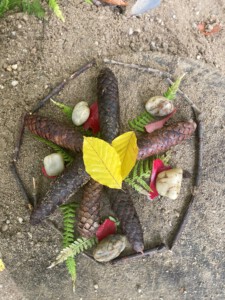 Die Kinder erhielten den Arbeitsauftrag, aus gesammelten Naturmaterialien wie Blättern, Stöcken, Eicheln und Moos kreative Bodenbilder zu gestalten. Dabei entstanden beeindruckende Kunstwerke, die nicht nur die Fantasie der Kinder widerspiegelten, sondern auch ihre Achtsamkeit gegenüber der Natur förderten.