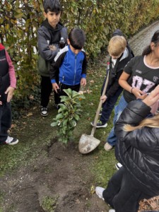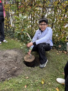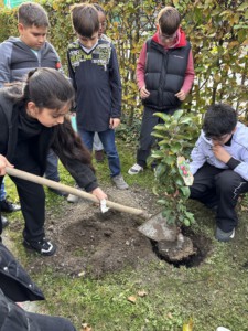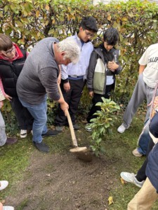 Im Rahmen der Tage der Gesundheit und Nachhaltigkeit nutzten die Schülerinnen und Schüler der Klasse 5 G-B die Gelegenheit, den Baumbestand unseres Schulgeländes um einen Apfelbaum zu erweitern. Schon jetzt freuen sie sich auf die erste Apfelernte in den kommenden Schuljahren.