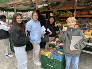 Die Schülerinnen und Schüler interviewten einzelne Händler zum Anbau und zum Vertrieb der regionalen Produkte.