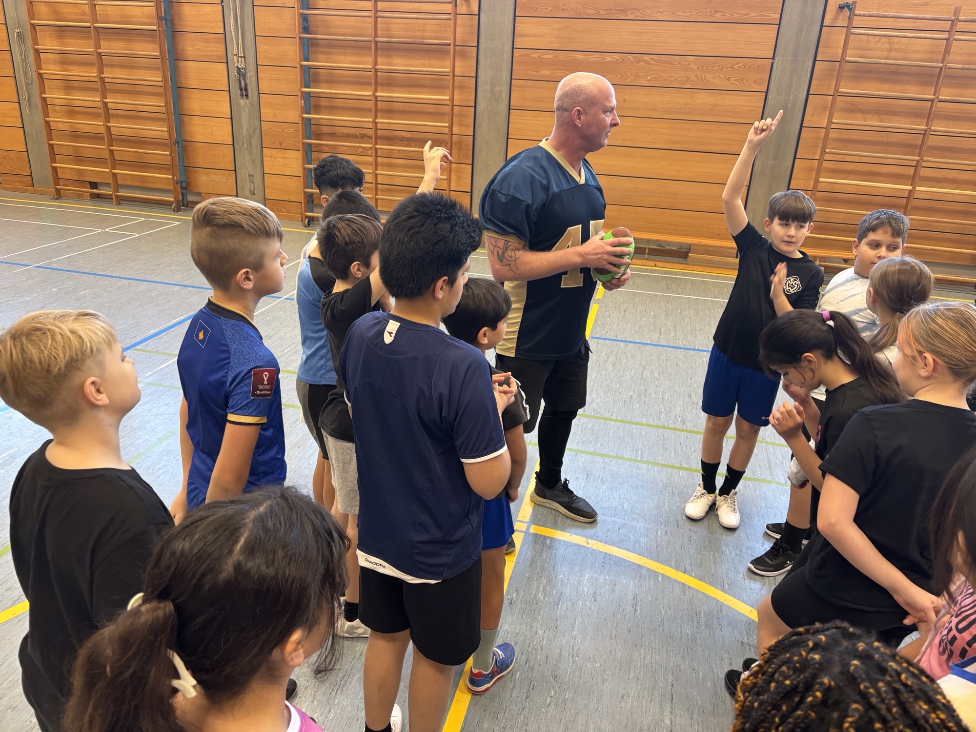 Trainer und Schüler waren sich einig, dass es mit dem kurzweiligen Angebot gelungen war, Interesse zu wecken und nicht wenige Schüler erkundigten sich gleich im Anschluss nach Kontaktmöglichkeiten zum örtlichem Football-Verein.