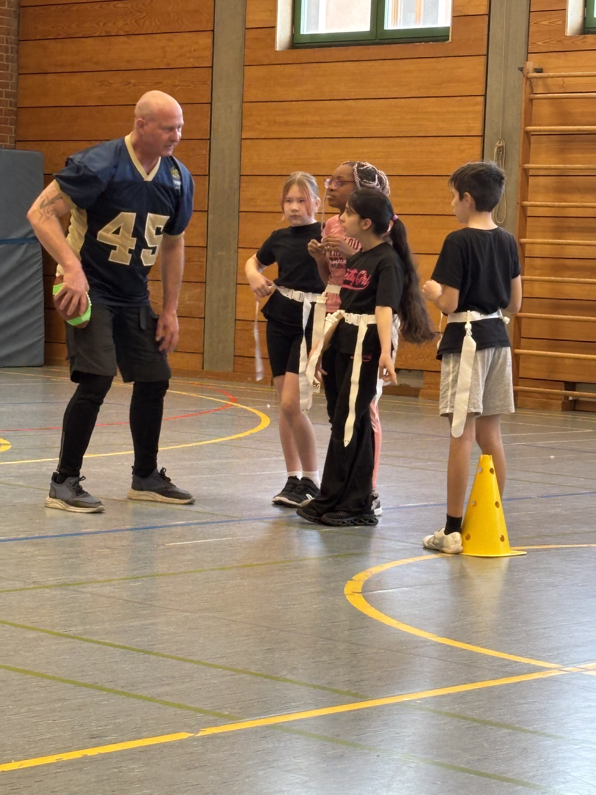 Viele Schüler der fünften und sechsten Jahrgangsstufen wussten gar nicht so recht, was sie erwartet, als sie am 29.10 2025 dem Aufruf, an einem Flag-Fooball-Probetraining teilzunehmen folgten.