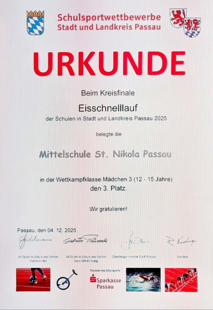 Trotz starker Konkurrenz aus der Realschule Ortenburg, dem Gymnasium Vilshofen, der Mittelschule Hutthurm und der Sport-Mittelschule Hauzenberg fuhren unsere EisläuferInnen ein Spitzenergebnis ein.