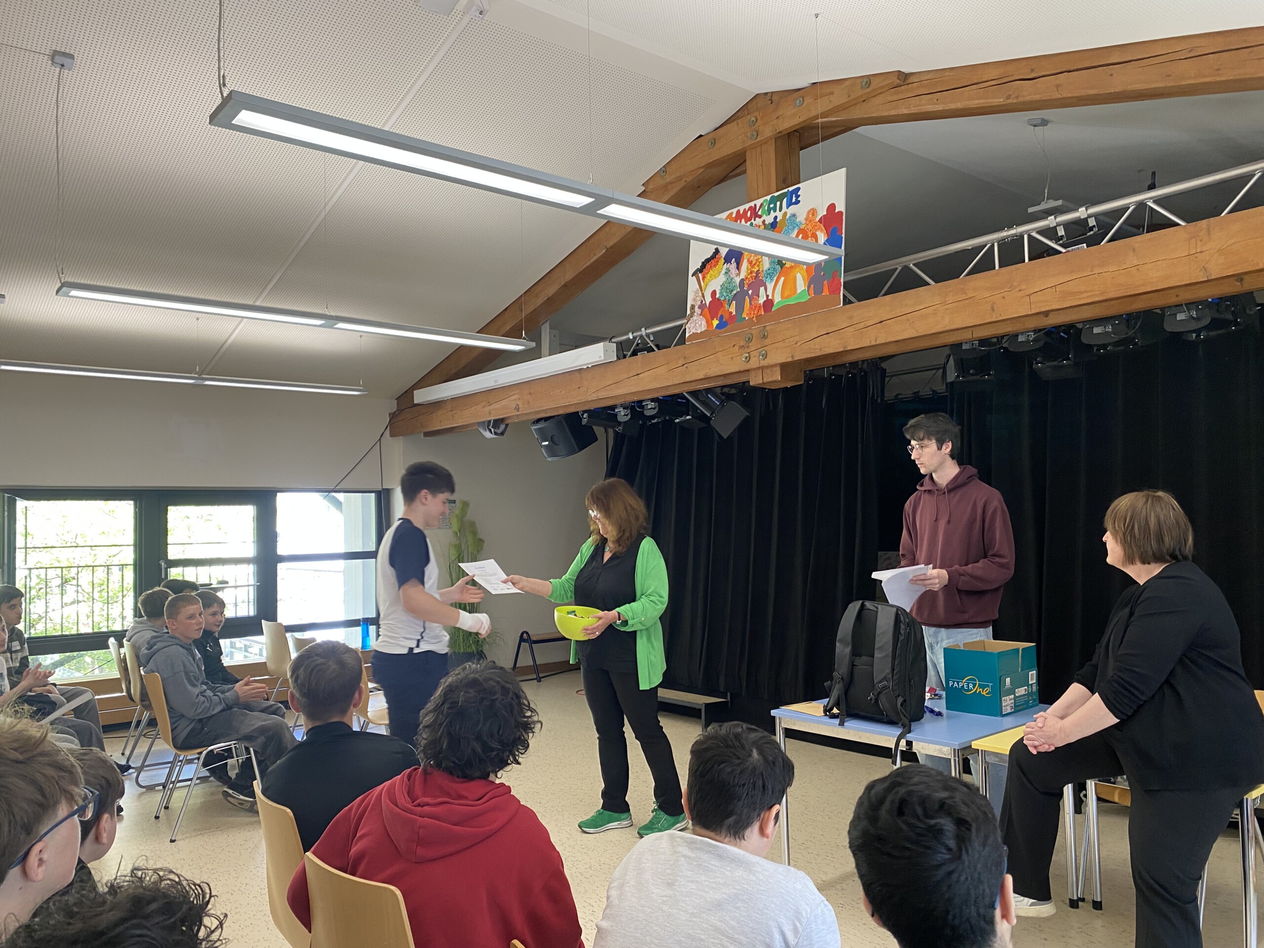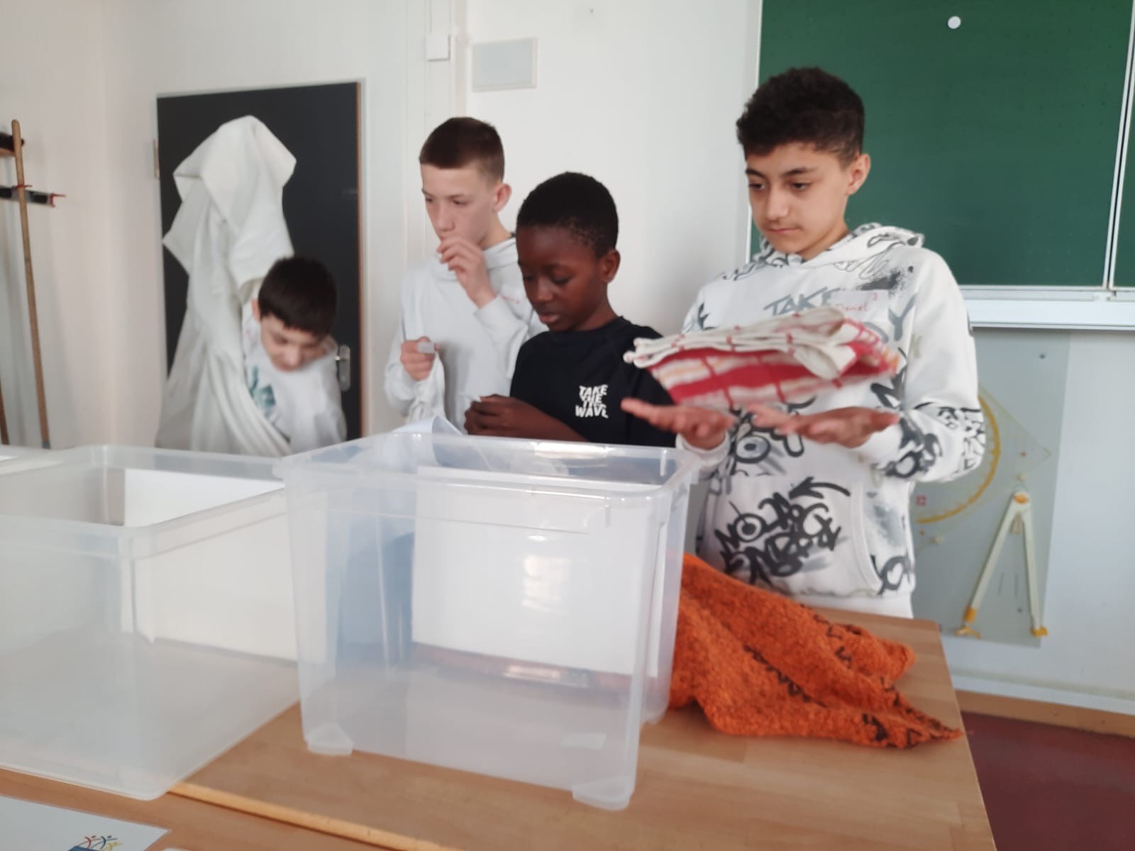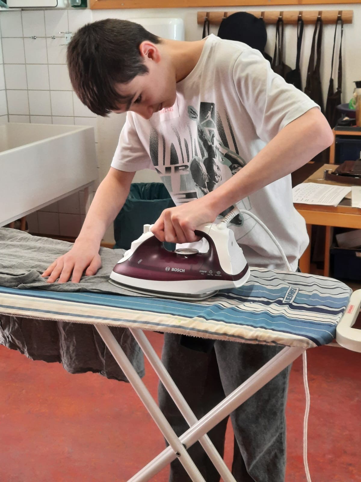 Die Jungen verbrachten den Tag in der Schule bei einer abwechslungsreichen Schulhausrallye. An verschiedenen Stationen probierten sie Haushaltstätigkeiten wie Kochen, Bügeln und Knopfannähen aus und stellten fest, dass diese Aufgaben Übung und Verantwortungsbewusstsein erfordern.